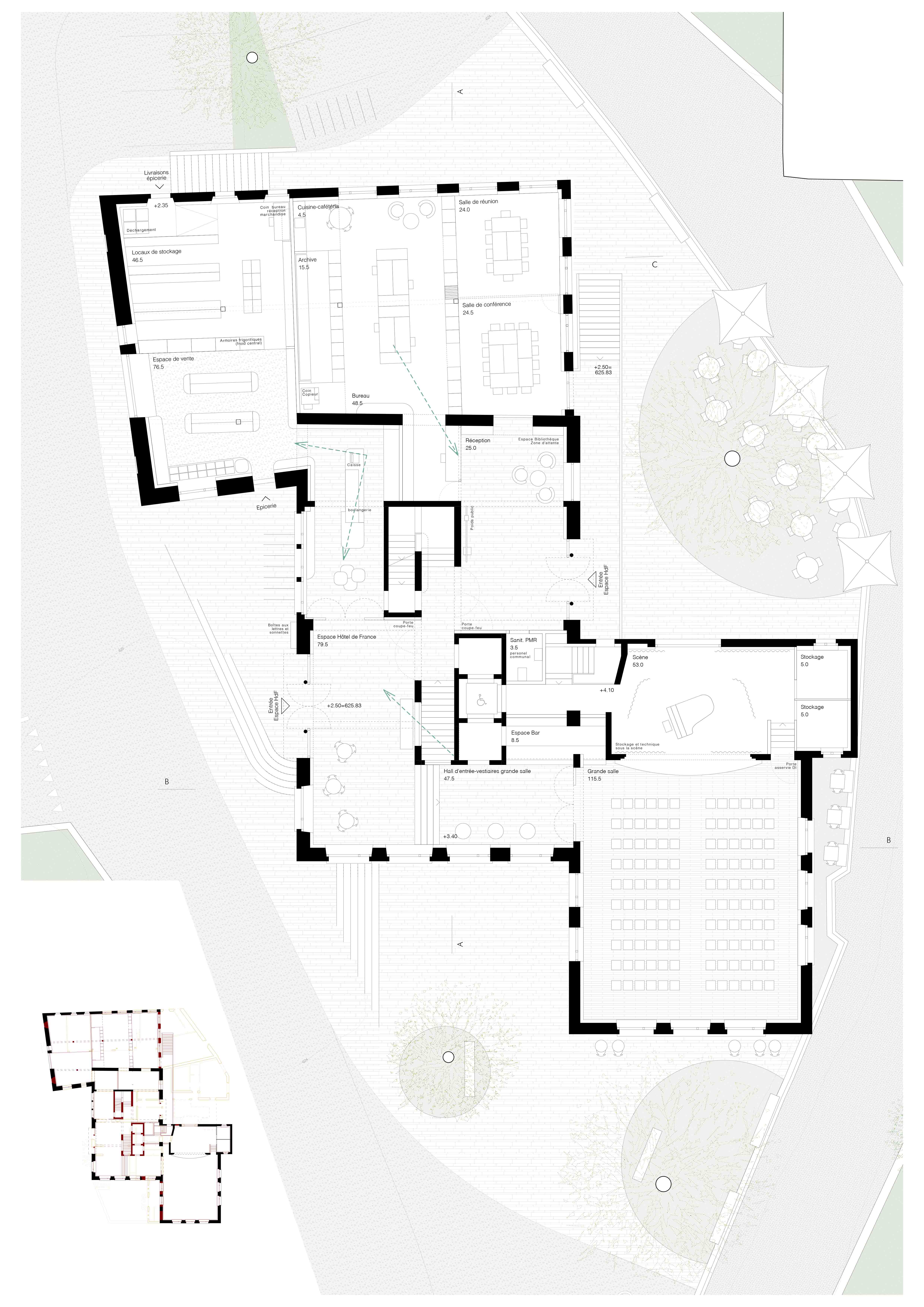 2024 Studienauftrag — Programm: Umbau des bestehenden Complexe de l’Hôtel de France mit Restaurant, Gemeindesaal, Dorfladen, Hotelzimmer, Gemeindeverwaltung, Wohnungen — Auftraggeberin: Gemeinde Cuarnens